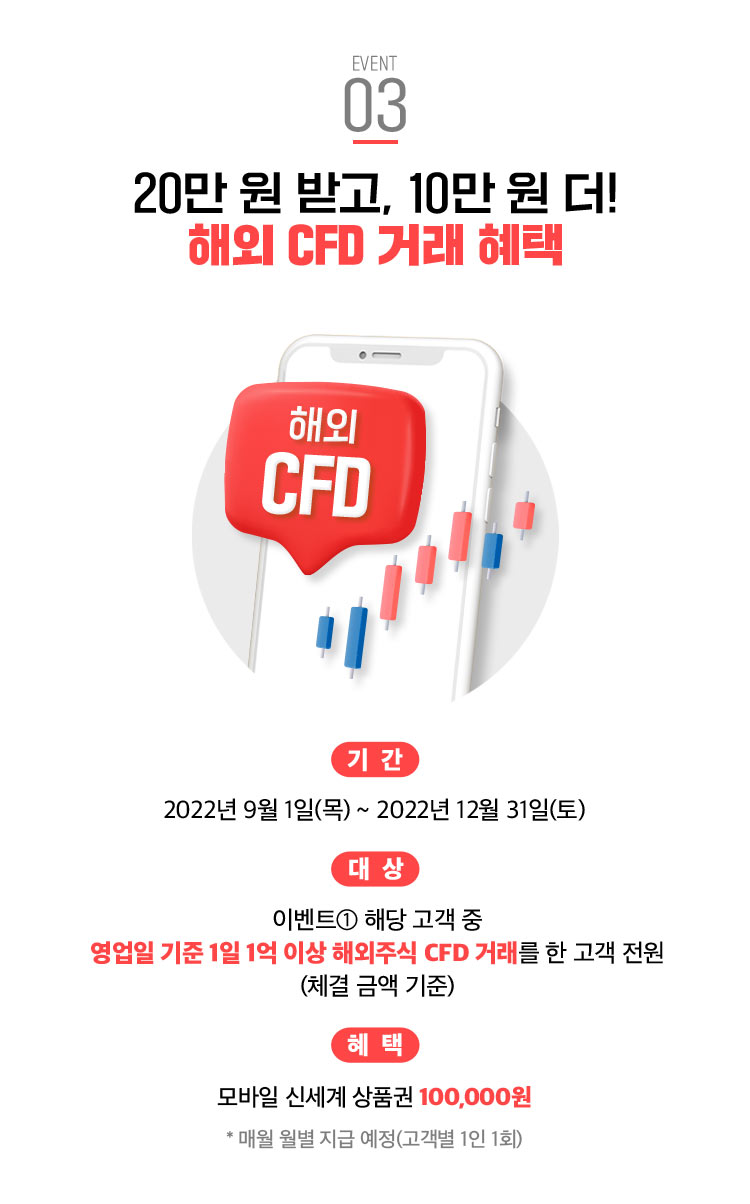 최근 국내주식 차액결제거래 CFD 시장 규모가 1년 새 20조원 이상 급증할 정도로 폭발적인 인기를 끌고 있는데 메리츠증권에서도 국내주식 차액결제거래 CFD 서비스를 출시했습니다. 그래서 관심 있는 분들에게 진행 중인 이벤트 및 특징을 소개합니다.2021년 8월 20일(금)부터 10월 29일(금)까지 진행 중인 이벤트를 보면 메리츠증권에서 CFD 거래를 하면 혜택을 받을 수 있습니다.